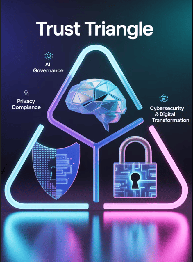 Together, they form the Trust Triangle the foundation every business needs to compete responsibly in a data-driven economy.